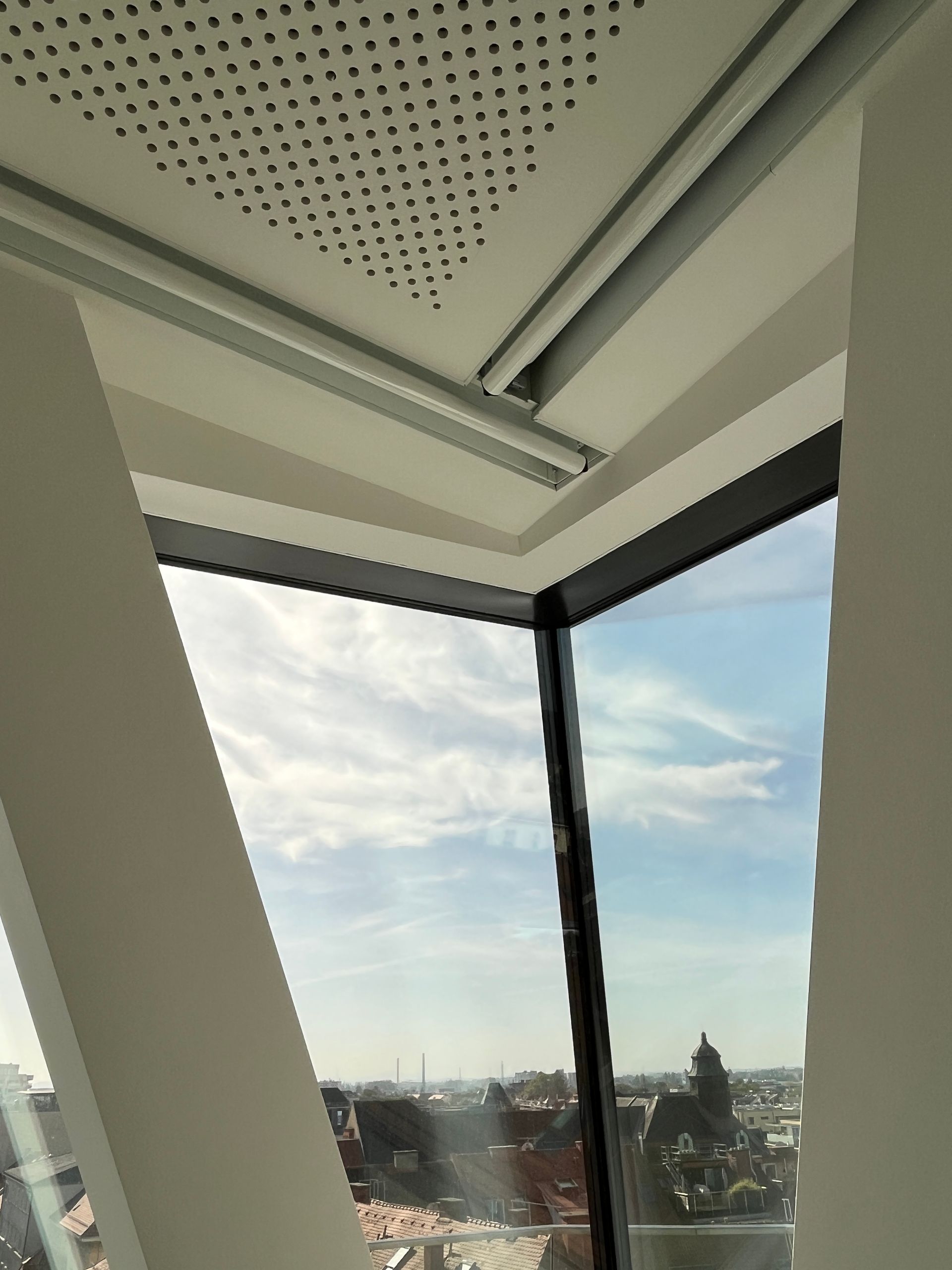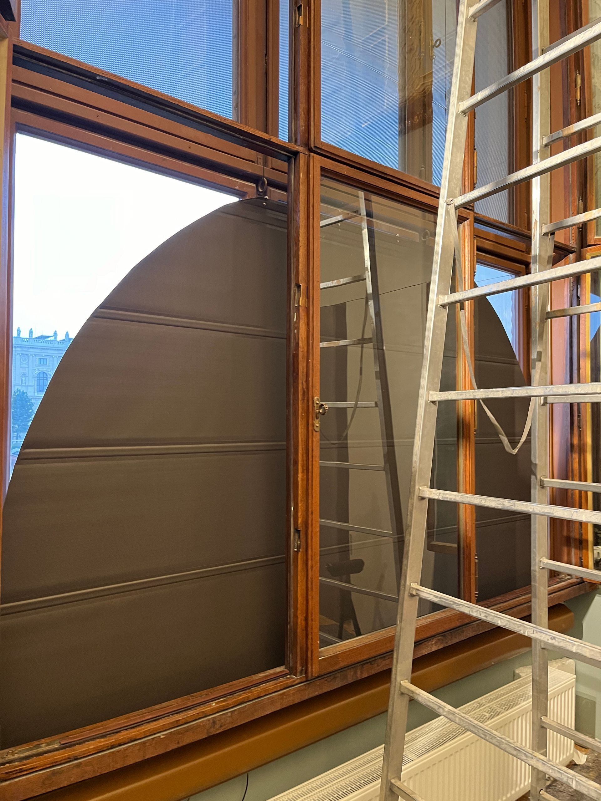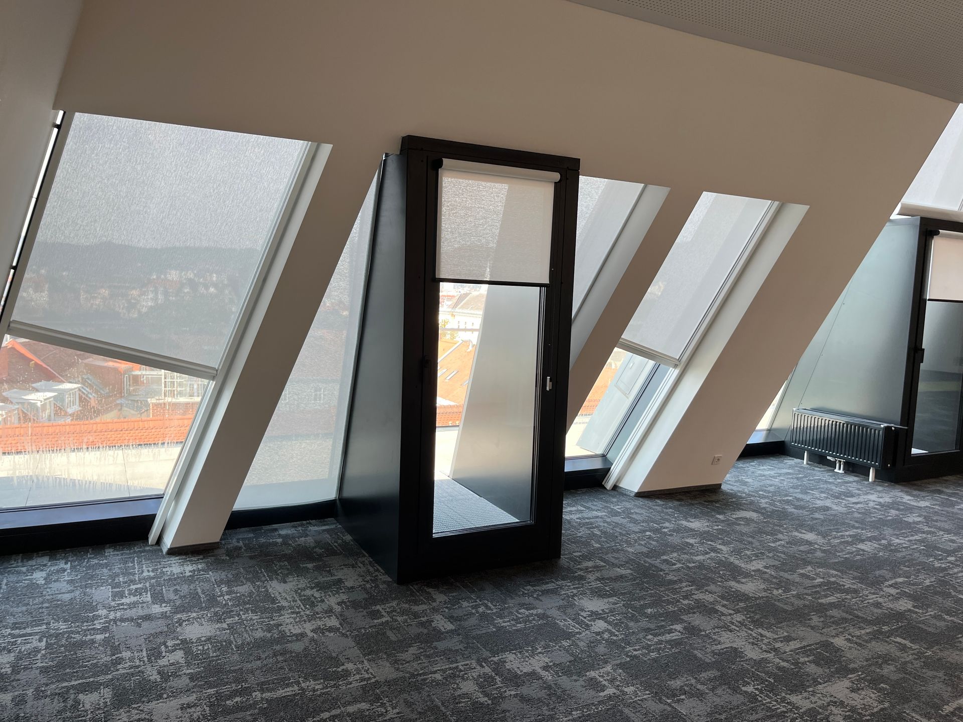 Soll die Privatsphäre geschützt werden, wird der Faltstore an die gewünschte Stelle ins Fenster geschoben - darüber bleibt der Ausblick frei.