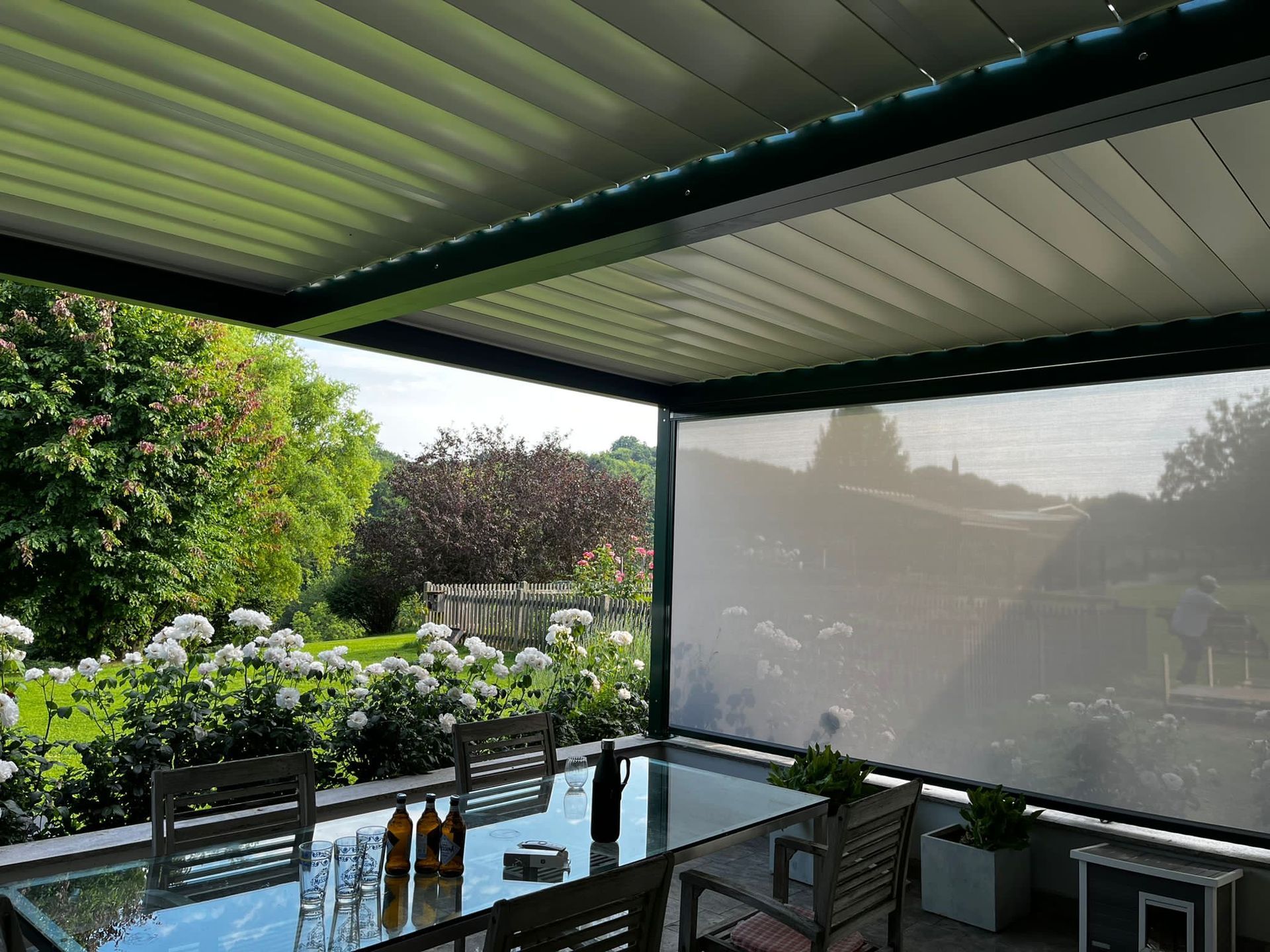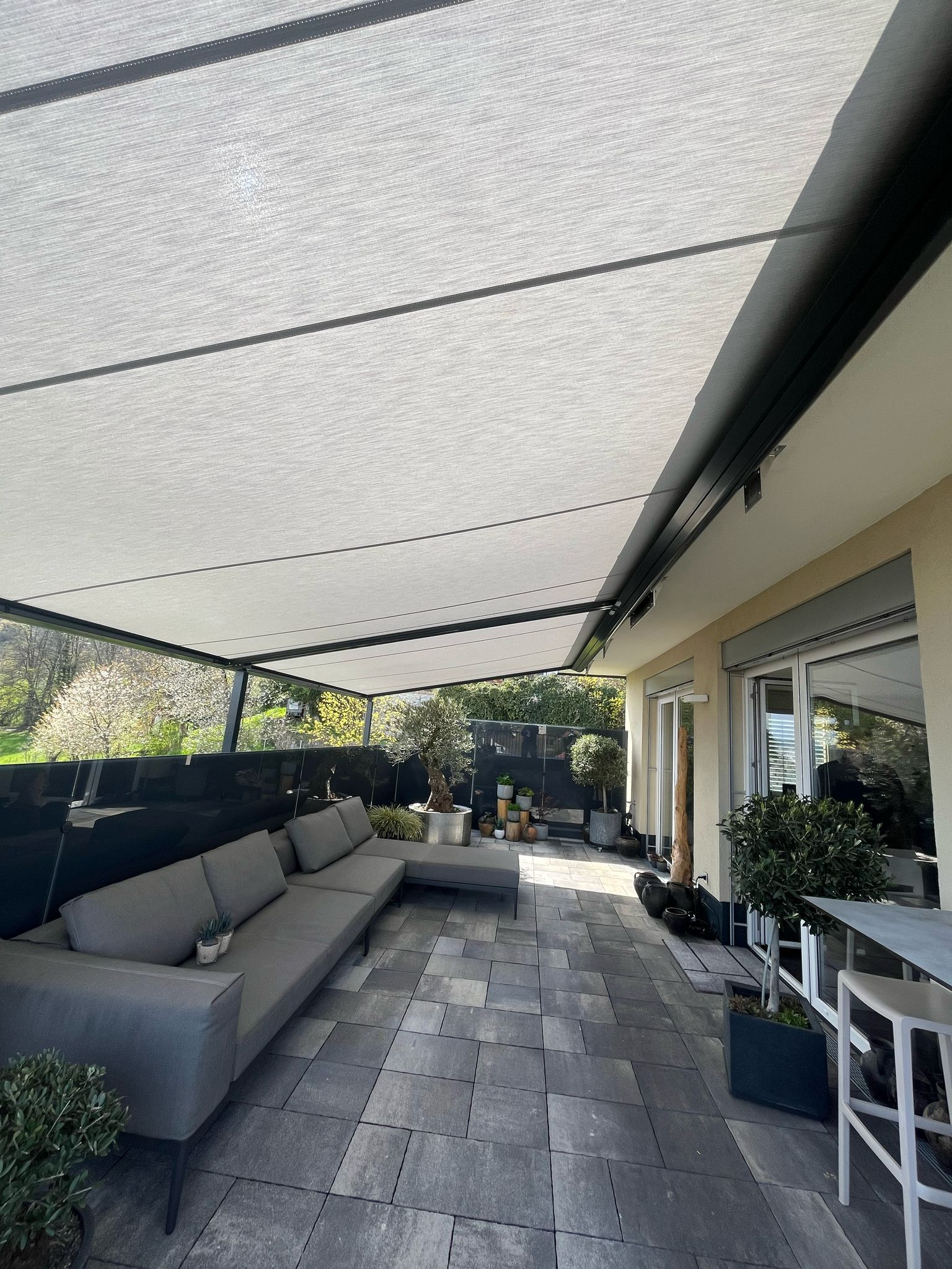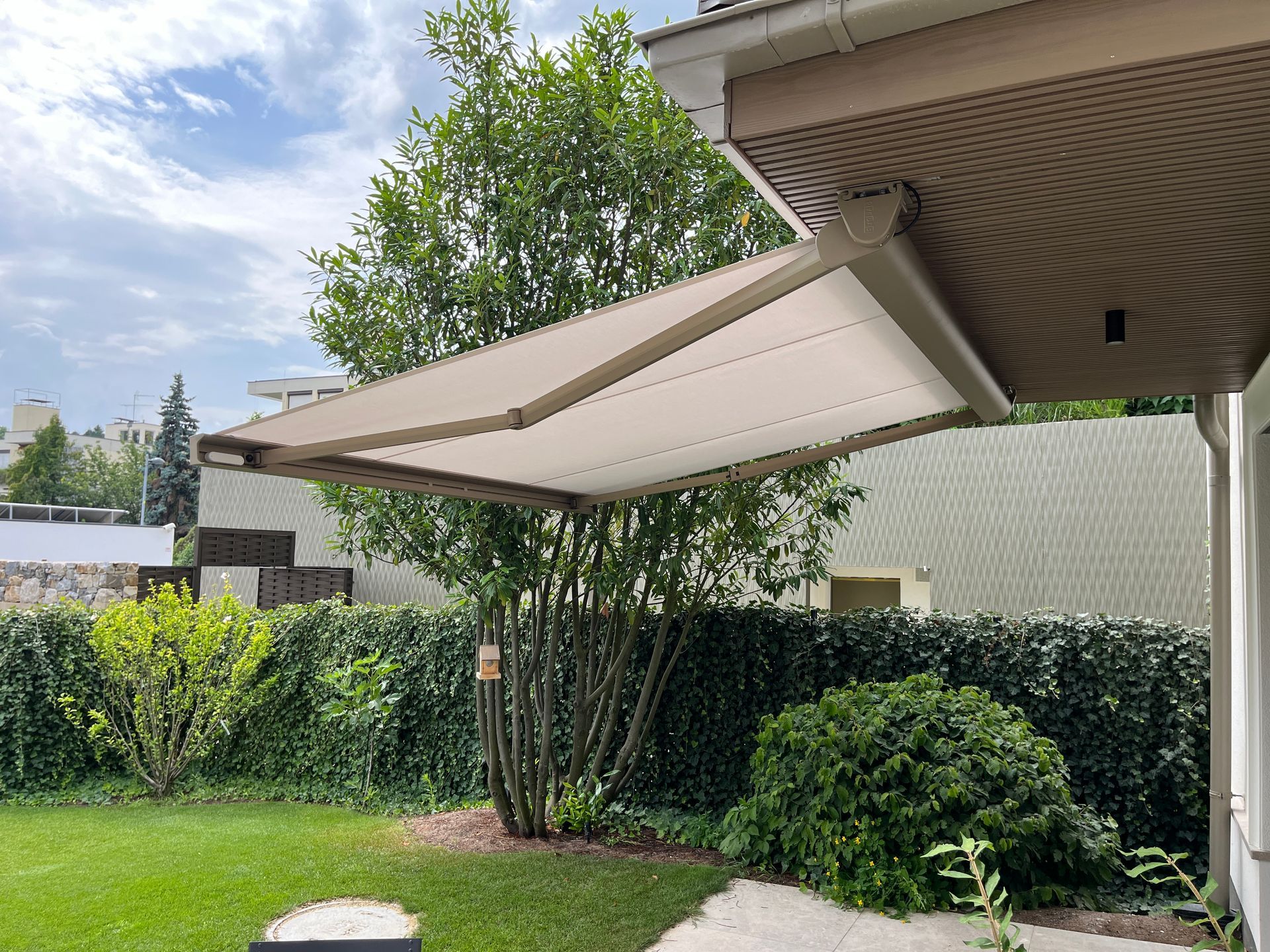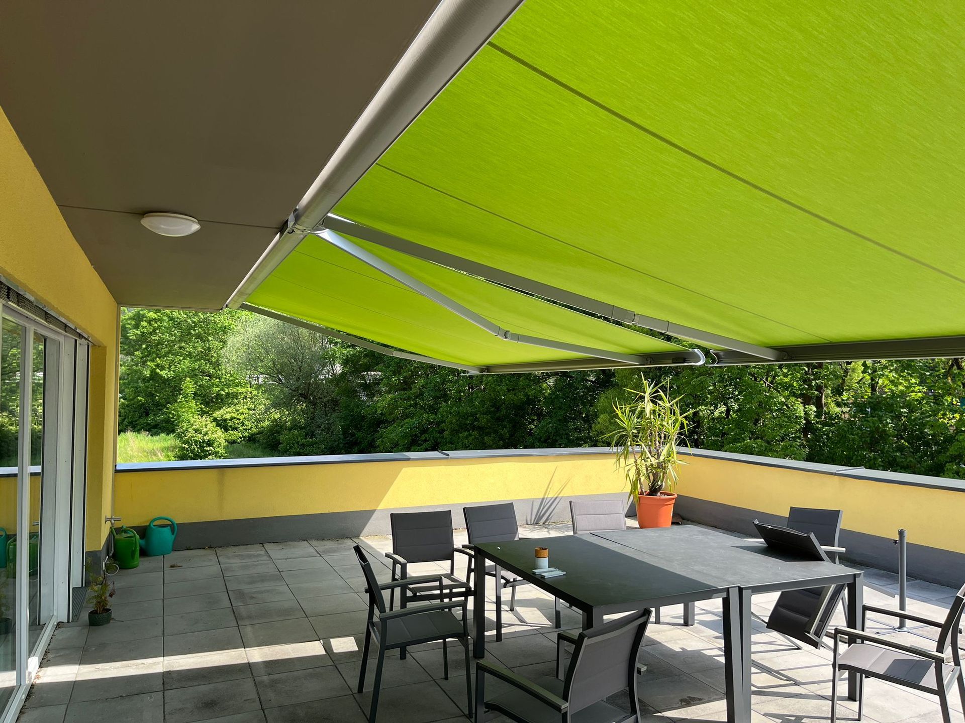 Unsere moderne Markise reagiert auf Sonne, Wind und Regen.