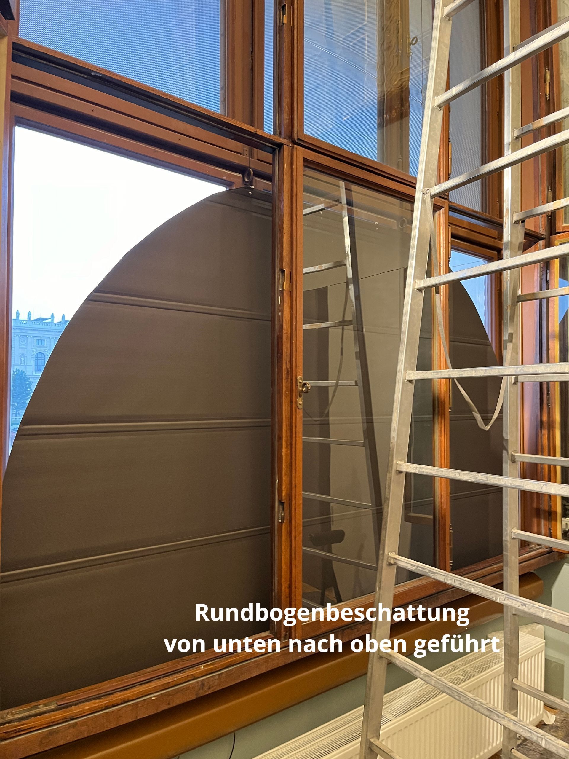 Es gibt auch Faltstores, die oben und unten am Fenster frei positionierbar sind: Sie können Sichtschutz, Ausblick und Lichtintensität frei bestimmen. Soll die Privatsphäre geschützt werden, wird der Faltstore an die gewünschte Stelle in Fenster geschoben - darüber bleibt der Ausblick frei.